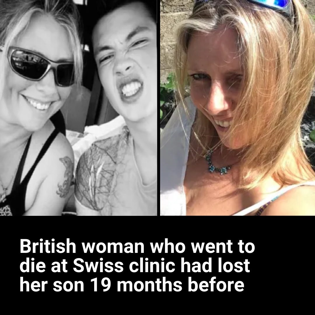 A British mum who went to die at a clinic in Switzerland had lost her 26-year-old son just 19 months before.