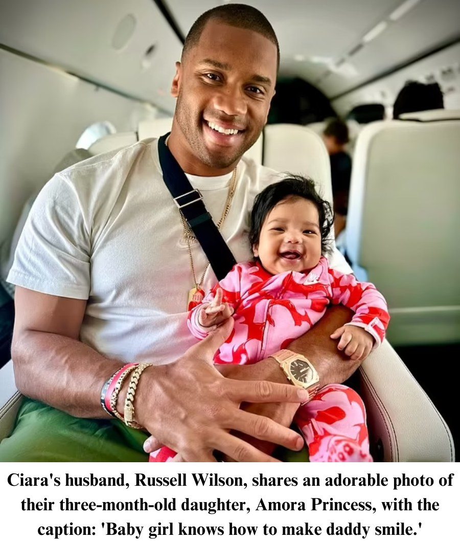 Ciara’s husband Russell Wilson, 35, took to Instagram on Monday to share an adorable snap with their youngest child – three-month-old daughter Amora Princess