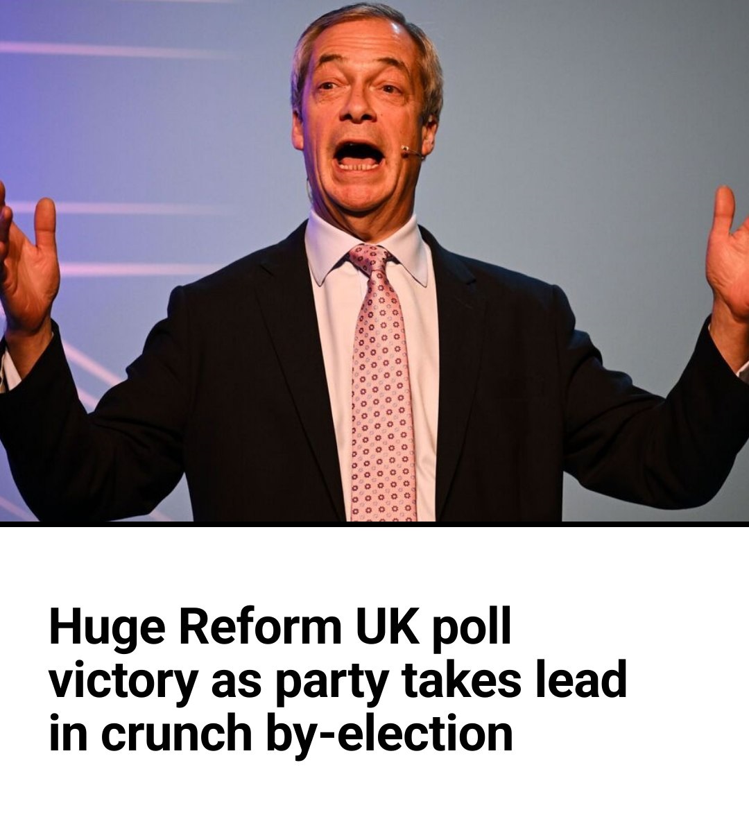 Huge Reform UK poll victory as party takes lead in crunch by-election