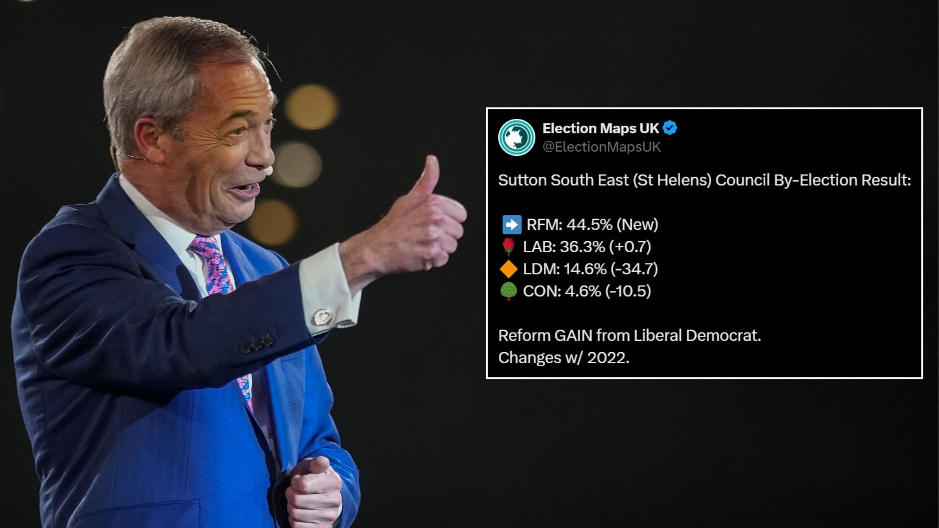 Reform UK deals crushing blow to Lib Dems with thumping by-election win ahead of local elections
